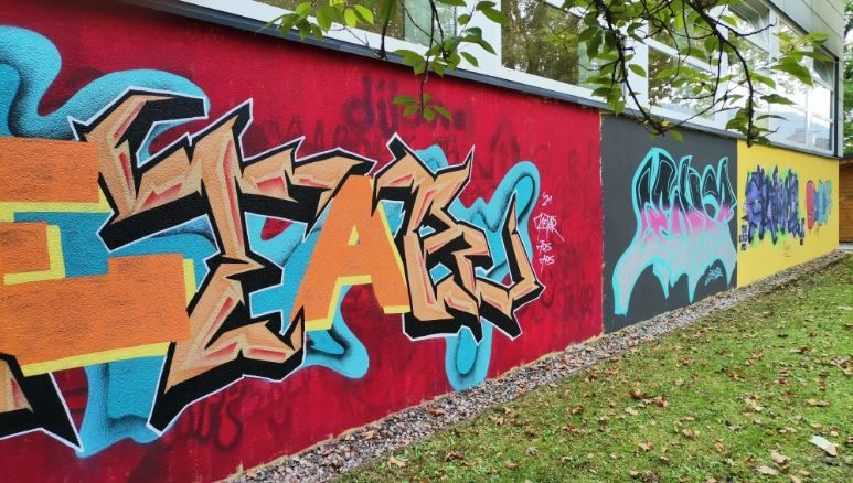 Weitere legale Fläche ab sofort zum Sprayen freigegeben: Wand der Mittelschule Völkendorf (Seite Paulapromenade)