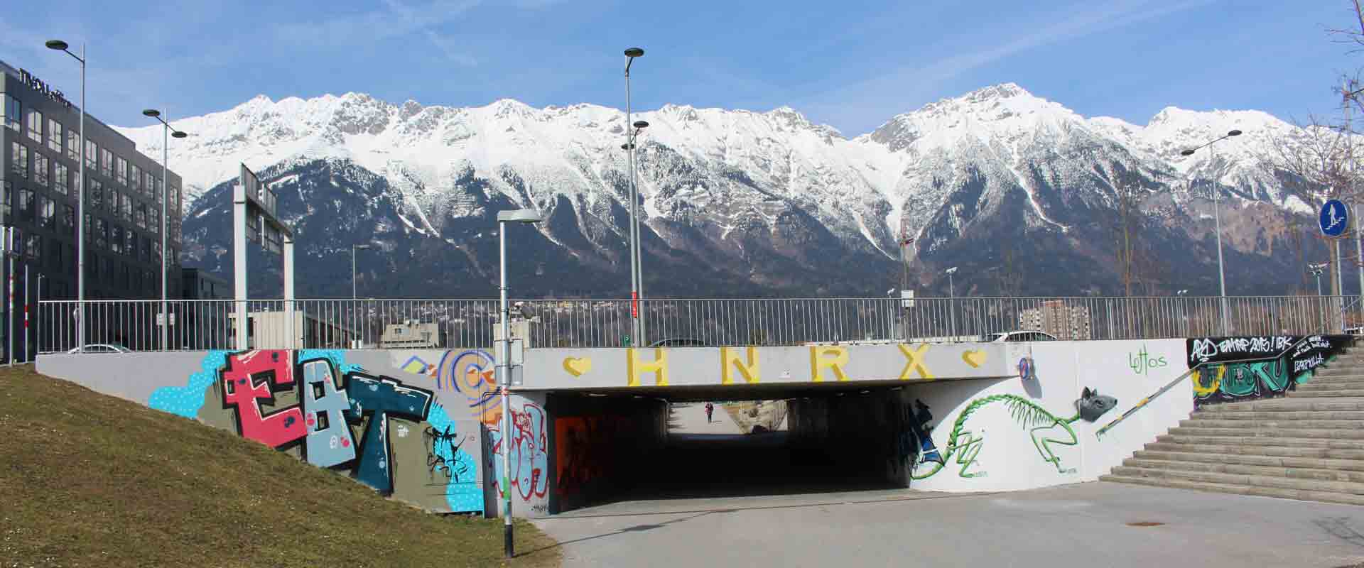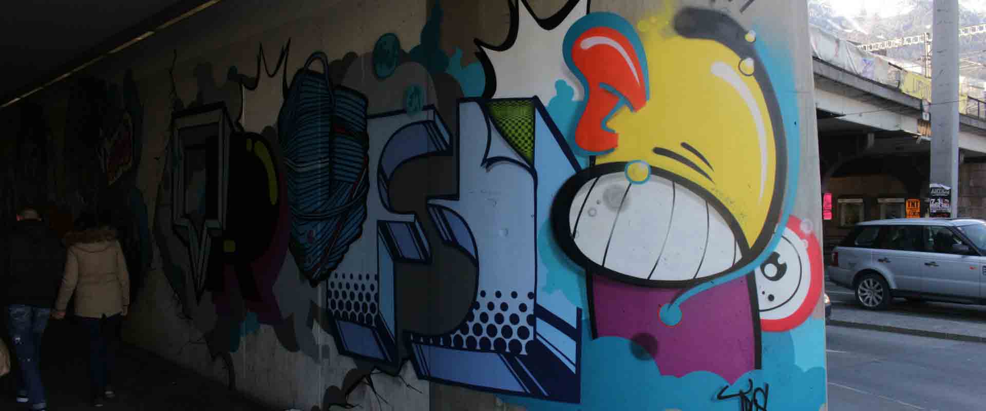 Legal Walls im Bundesland Tirol, u.a. in Innsbruck, Hall, Imst, Landeck und Telfs.