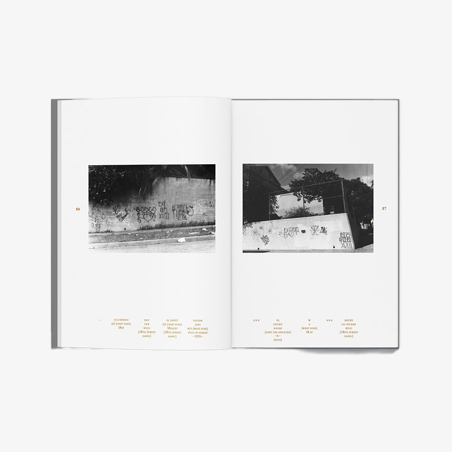 Cholo Writing is the 20th century’s oldest form of graffiti, a Mexican-American phenomenon evident in Los Angeles long before the appearance of tags and pieces in the late 1960s New York. It has had a major influence on the visual expressions of Californian popular culture, including the lowrider, surf, skate and hip-hop movements. «Placas» are territorial inscriptions created to define a gang’s turf, a genuine, constantly evolving urban calligraphy with strict codes used by Latino gangs for street writing since the late 1930s. Here, the aesthetic evolution of Cholo Writing is documented and the influence of blackletter typefaces and calligraphic models such as Old English is traced through two collections of photographs. One by Californian Howard Gribble, who photographed Chicano gang graffiti over a wide geographic area in the early 1970s, and one by French graphic designer and writer François Chastanet, who traveled to the same Los Angeles neighborhoods in 2008 to document early 21st century inscriptions.