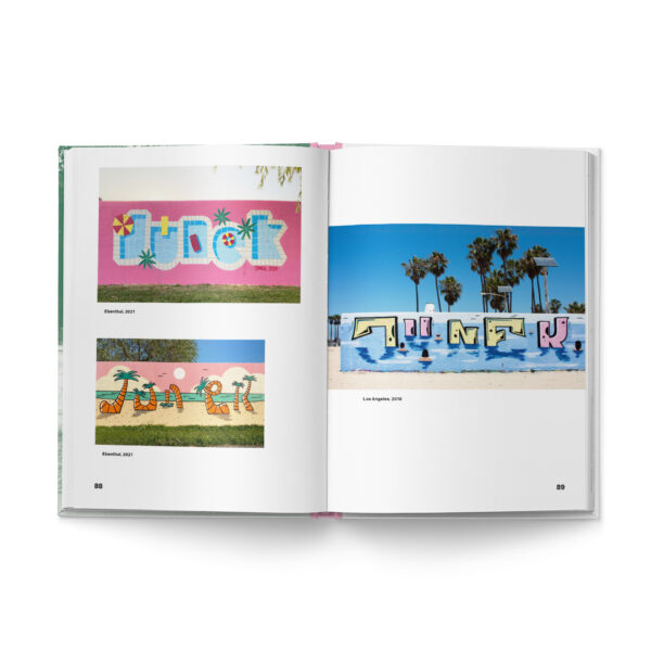 150 times JUNEK – different every time. This book presents 150 variations of the writer’s name, which always remains the same, created in public spaces between 2006 and 2025. The selection of pieces ranges from classic graffiti stylewriting and collaborations with other writers to graphic, conceptual and illustrative works. The paintings are characterized by their constant change and variety, whereby the basic structure of the letters is constantly reinterpreted. The animated styles, which can be brought to life via a QR code, are a particular highlight.