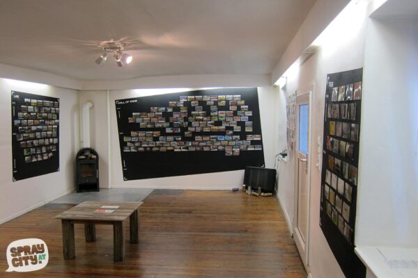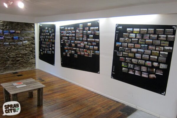 Doch wie passen nun Graffiti-Writing, Internet und Galerie zusammen? Die Ausstellung BUCHSTABENBILDER in der OXYMORON GALERIE präsentiert erstmals einen Einblick in die dokumentarische Arbeit von SPRAYCITY. Eines vorweg: Street Art auf Leinwänden wird hier nicht zu finden sein.