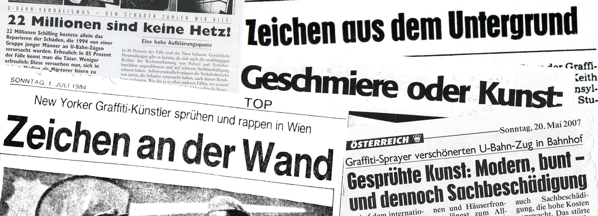 In order to document the reception of graffiti writing in the Austrian media, SPRAYCITY creates an ongoing press review of all common daily newspapers, print, TV and other publications on the subject. Our press archive contains around 3,900 articles from 1977 to 2025.